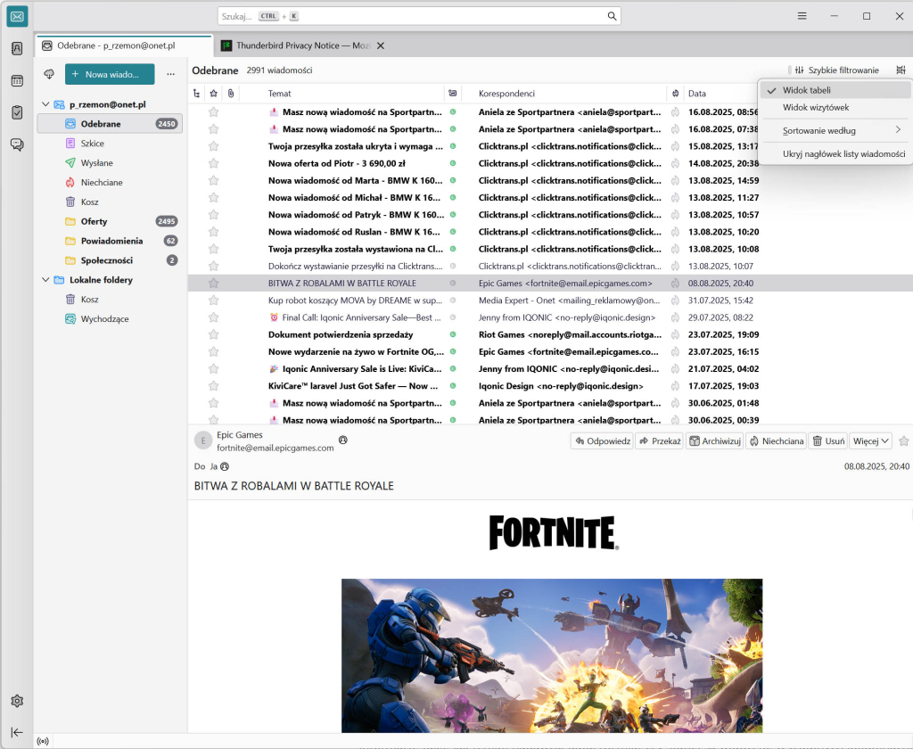 Klienci pocztowi typu desktop wciąż mają sporą przewagę nad webmailami – są szybsze, wygodniejsze i dają większą kontrolę nad wyglądem skrzynki. Jednym z najpopularniejszych programów tego typu jest Mozilla Thunderbird, który pozwala dopasować układ paneli i listy wiadomości do sposobu pracy użytkownika. W tym artykule pokazujemy, jak działają najważniejsze układy oraz jak przełączyć widok na tabelę.